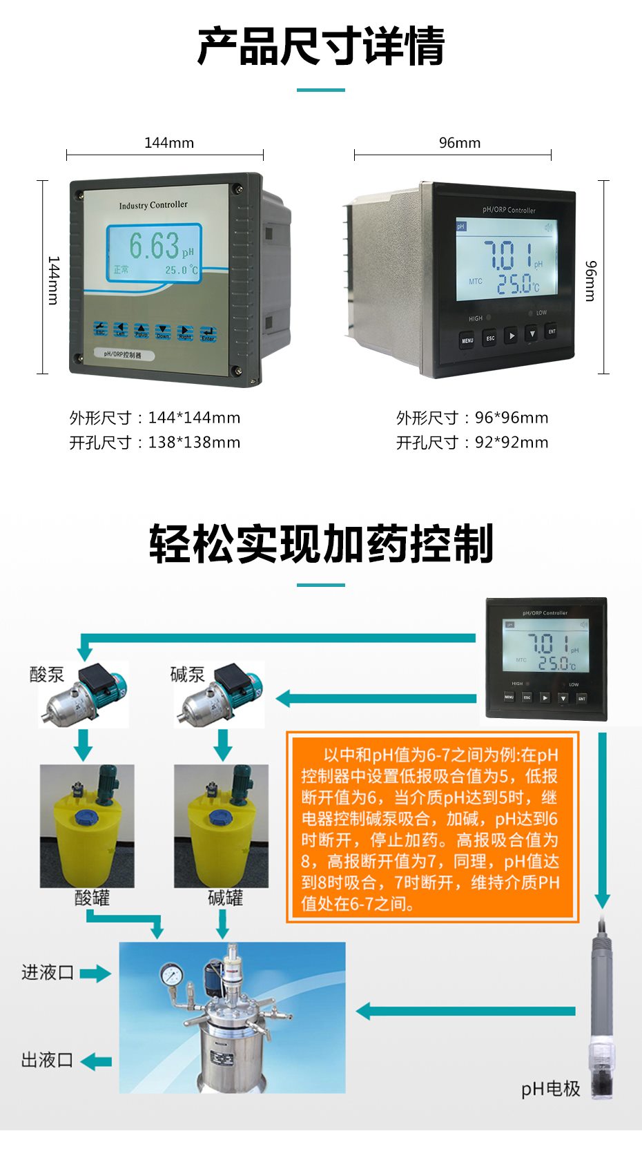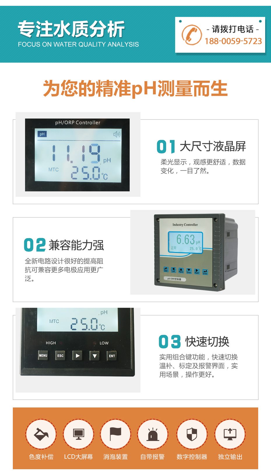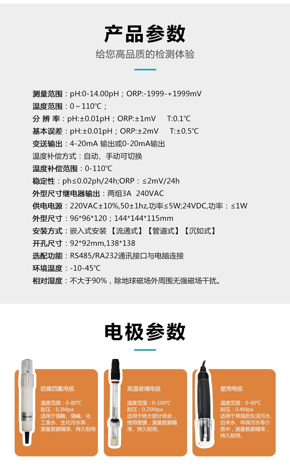 適用場合:PH/ORP測試儀是一款智能在線化學分析儀器之一,是一款廣泛應用于火電、化工化肥、冶金、環保、制藥、生化、食品和自來水等溶液中PH值或ORP值和溫度的連續監測。 連續監測數據通過變送輸出連接記錄儀實現遠傳監控與記錄,也可以連接RS485接口通過MODBUS-RTU協議可方便聯入計算機實現監控與記錄。